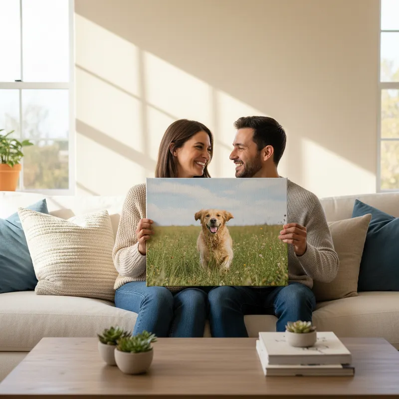 Perfect for family photos, wedding shots, pet portraits, travel memories and meaningful gifts. This is the fastest route from your phone or computer to a finished canvas print.